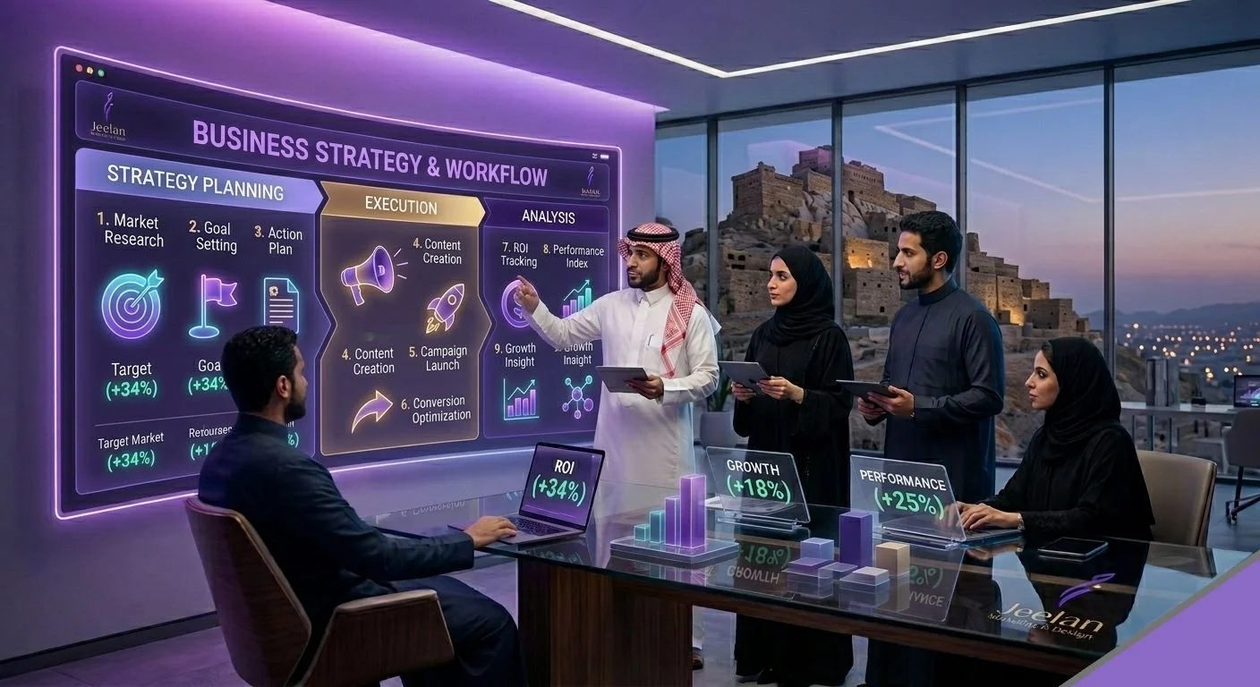 في جيلان، ما نقدم حلول جاهزة ولا نشتغل بعشوائية كل خطوة نسويها مبنية على فهم عميق لمشروعك وسوقك بهدف تحقيق نمو حقيقي ومستدام